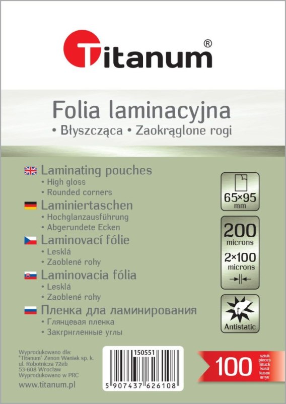 Folia do laminowania przezroczysty 100mic. [mm:] 65x95 Titanum