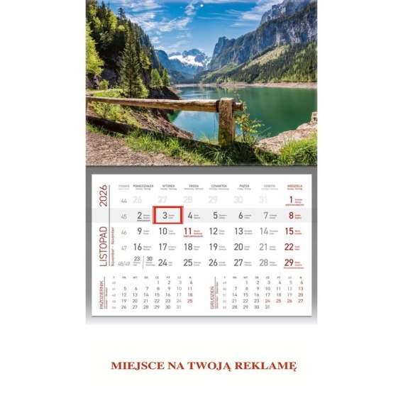 • Kalendarz ścienny GÓRSKIE JEZIORO JEDNODZIELNY plecki zielone 512mm x 295mm Wydawnictwo Wokół Nas (KS 056)
