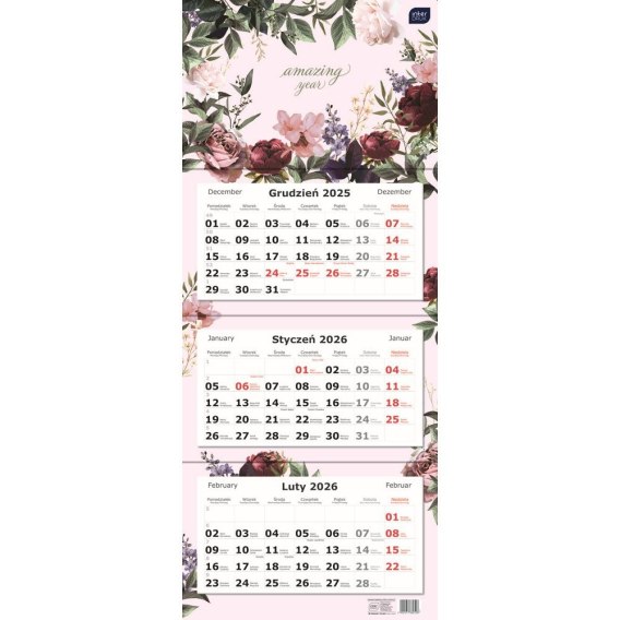 Kalendarz ścienny TRÓJDZIELNY 825mm x 340mm Interdruk (KWIATY)