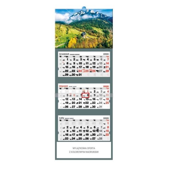 Kalendarz ścienny TRZY KORONY trójdzielne 320mm x 855mm Jotan (t57)