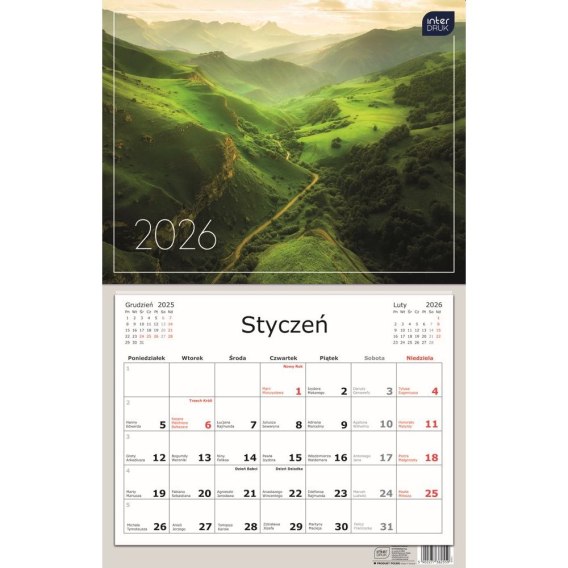Kalendarz ścienny jednodzielny 320mm x 500mm Interdruk (widoki)