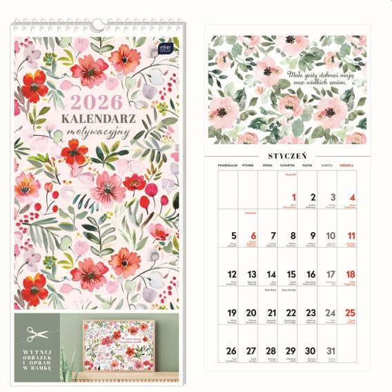 Kalendarz ścienny motywujący 220mm x 460mm Interdruk (KWIATY)