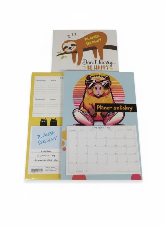 • Kalendarz ścienny szkolny KAPIBARA,KOT,LENIWIEC 600mm x 300mm Jotan (trójdzielny)