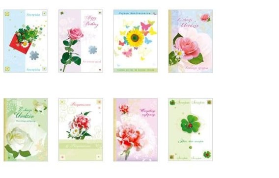 Kolekcja TĘCZA to połączenie tradycyjnego wzornictwa kwiatowego z wyjątkową estetyką. Wzbogacona o ręcznie doklejane elementy oraz zdobiona mieniącym się brokatem zawiera życzenia na wiele różnych okazji.