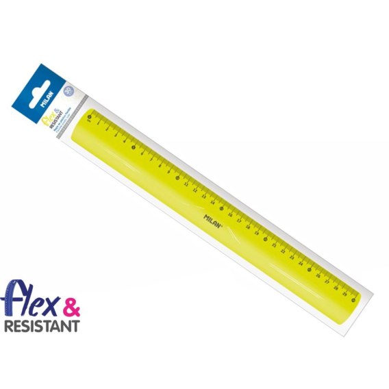 Linijka 30 cm wykonana z elastycznego i trwałego materiału, co utrudnia jej złamanie (Flex & Resistant). Skośna krawędź zapobiega zabrudzeniom. Półprzezroczysta linijka w jaskrawym żółtym kolorze nawiązującym do kolekcji ACID.