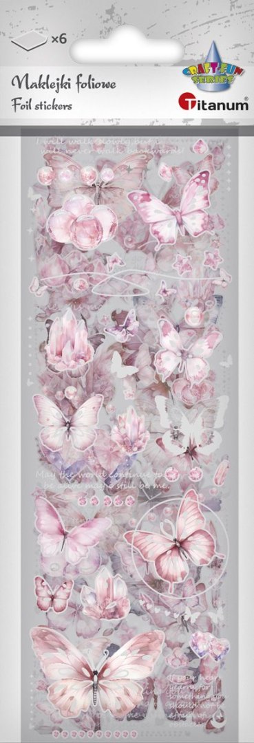 Naklejki foliowe, 6 plansz, wzory: motyle, tonacja różowa.