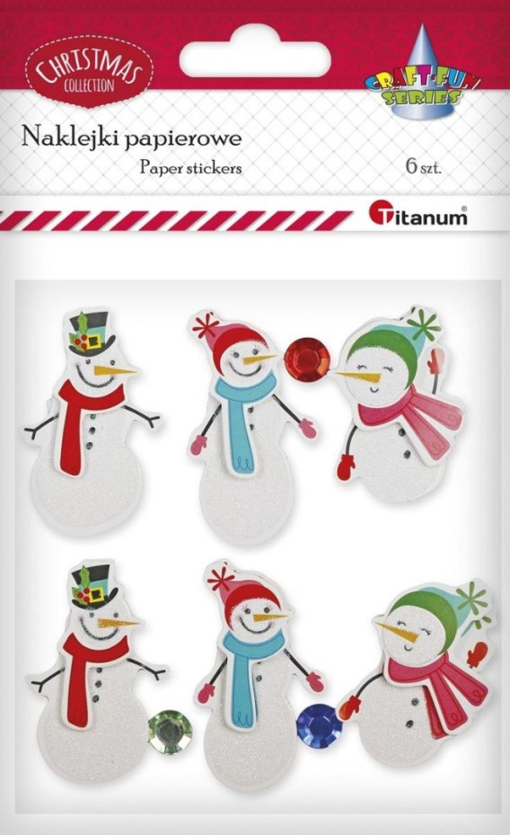 Naklejki papierowe 3D, wzór: Bałwanki. 6 sztuk.