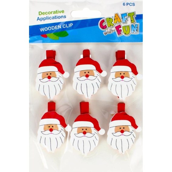 Zalety produktu: idealne do przyczepiania zdjęć, obrazków oraz wszelkiego rodzaju kartek, doskonałe do wykonywania dekoracji metodą scrapbooking oraz rękodzieł. Używaj tego produktu w połączeniu z innymi akcesoriami oraz kompletami z serii CRAFT WITH FUN Zawartość opakowania: 6 szt. 4 cm spinaczy z drewnianymi Mikołajami. Produkt wykonany z drewna oraz filcu. Wymiary/waga: wymiary opakowania dł. x wys. x gł. cm : 13x18x2, waga produktu w opakowaniu kg : 0,03 kg. Zestaw przeznaczony dla dzieci w wieku: 3 . Pakowany w woreczek z zawieszką. W inerze po 12 szt. W kartonie zbiorczym po 144 szt.