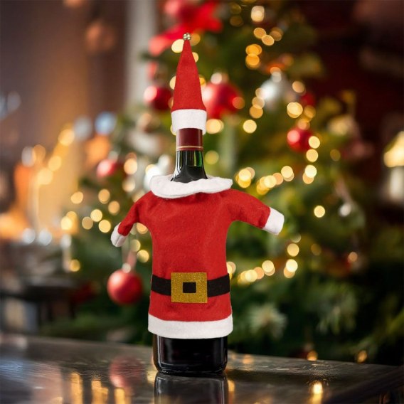 Ubranko na butelkę - Mikołaj to zabawny i efektowny gadżet, który doda wyjątkowego klimatu świątecznym spotkaniom. Strój przypominający klasyczny kostium Świętego Mikołaja, z charakterystycznym pasem i czapką, sprawi, że każda butelka stanie się oryginalną dekoracją stołu. To świetny sposób, aby nadać prezentowi elegancki, a jednocześnie humorystyczny akcent.